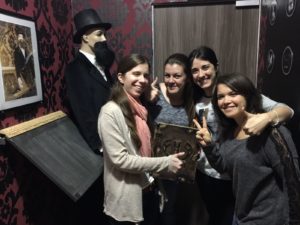 Hasta que llegó la siguiente prueba, que fue una desas cosas que te menten en una habitación y hay que resolver el enigma…. un escape room creo que se llama… y aunque el chico (inicialmente no fue muy simpatico) luego nos lo pasamos pipa, itentando resolver el enigma. Yo nunca lo había hecho antes y lo encontré muy chulo). Pues bien si preguntais a cualquiera de las del grupo diran casi cual juramento que «superamos la prueba» pero … la realidad es que nos faltaron 30 segundos-1 minutos. Acabar de poner la espada en la tumba de nose quien que estábamos buscando… en fin que CASI CASI lo conseguimos… pero es secreto máximo!!