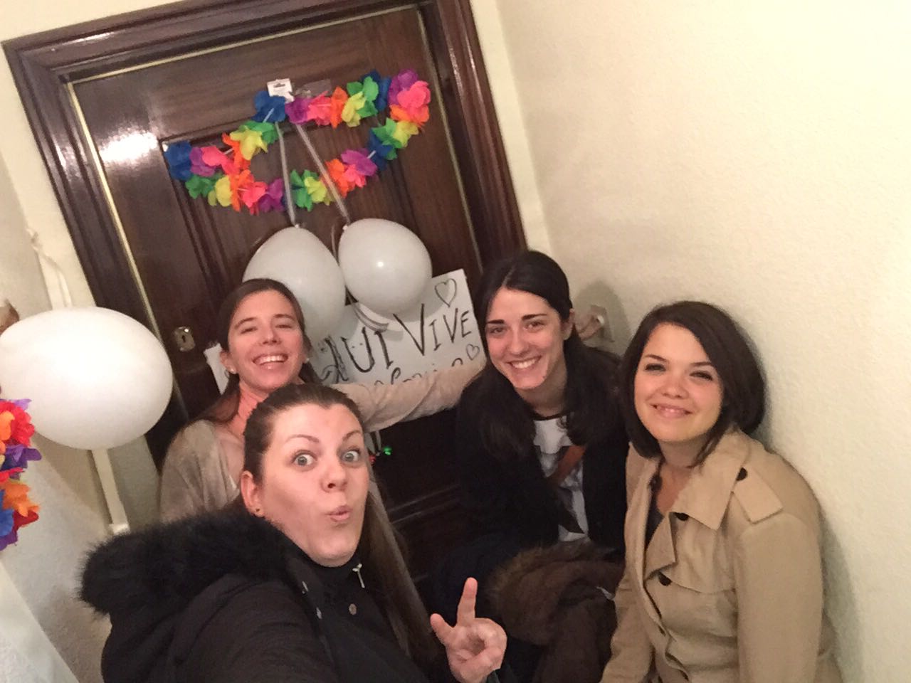 Y es que se ve que estaban todos compinchados para que yo el «sábado» estuviera por la mañana en casa «esperando al lampista» que sólo podia ir esa mañana. Así que yo andaba tranquilamente en mi casa esperando «al lampista» tal y como insistentemente mi madre me había pedido… y de repente picaron a la puerta… y aparecieron la Patri, la Irene y Sonia (desde Pamplona) diciendo: SORPRESAAAAA!!! nos vemos de despedida!!